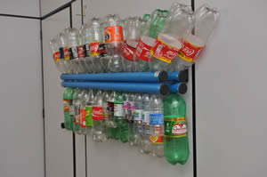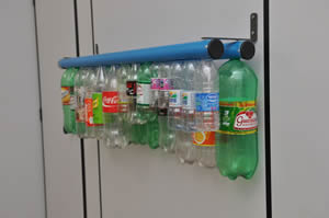 - Fixação com bucha e parafuso direto na parede; - Armazena até 15 garrafas e frascos Pet (tamanhos variados); - Removível (acompanham buchas e parafusos).